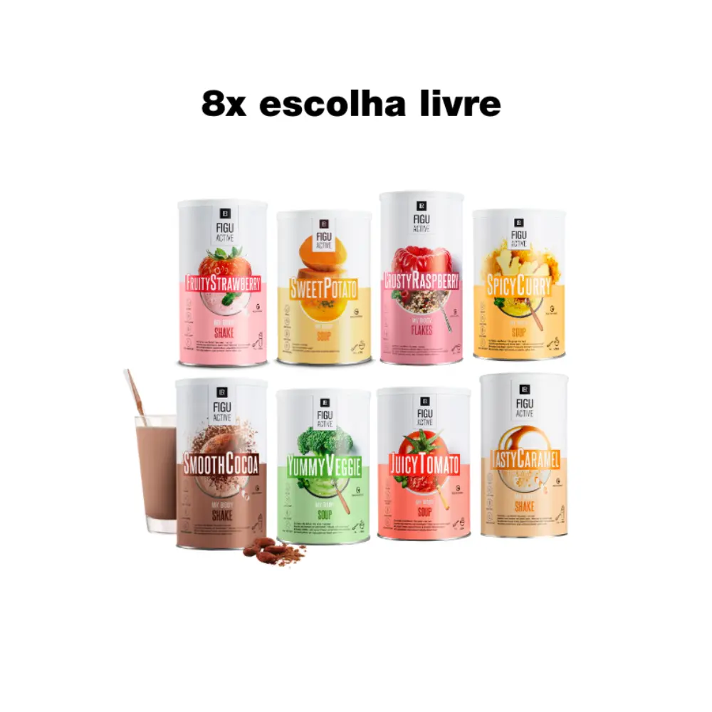 | Faça a sua escolha 8 | Batido Soft Baunilla, Batido Fruity Strawberry – Morango, Batido Lovely Coffe, Batido Smooth Cocoa, Sopa de Caril, Sopa de Tomate, Sopa Vegetais, Flocos Crusty Raspberry, Batido Tasty Caramel, Sopa Batata Doce |